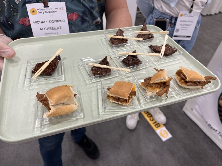 Alchemeat is paving the way in plant-based meats. Here, they offered steak sliders to Fancy Food attendees.