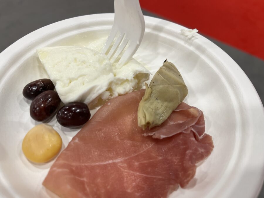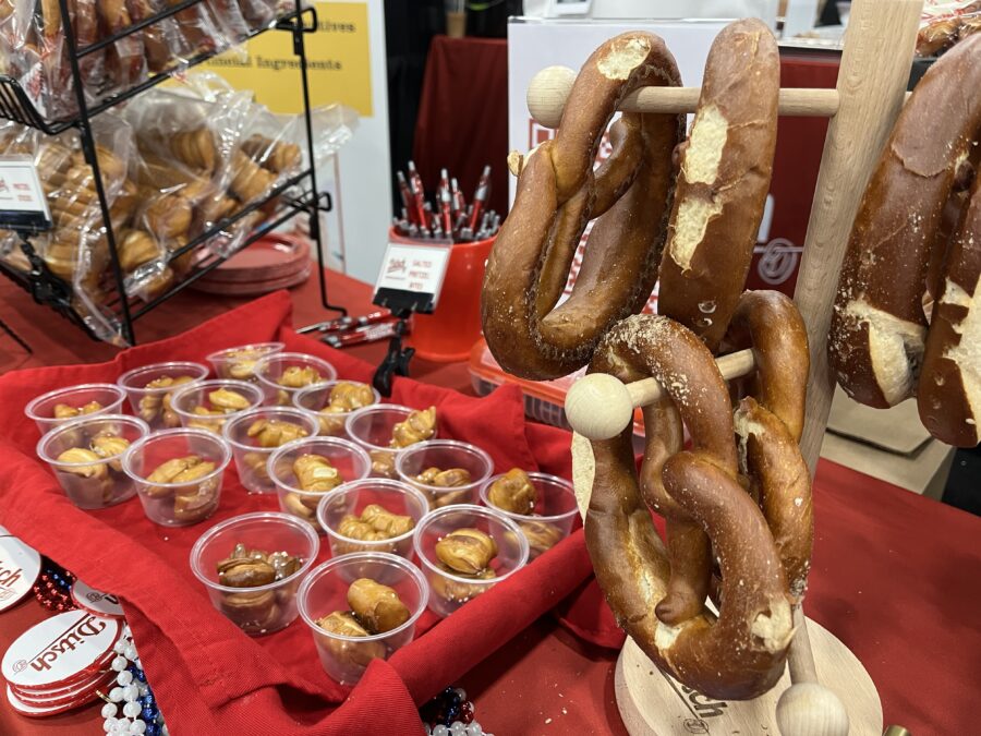 Like any convention, the final day was a free-for-all of sweets, treats, meats, cheeses, drinks, snacks, and promotional material as vendors strove to spread their brand and ease the flight home. Several bourbon pecan pies (top) and whole trays of candies were foisted upon The Food Institute team.
