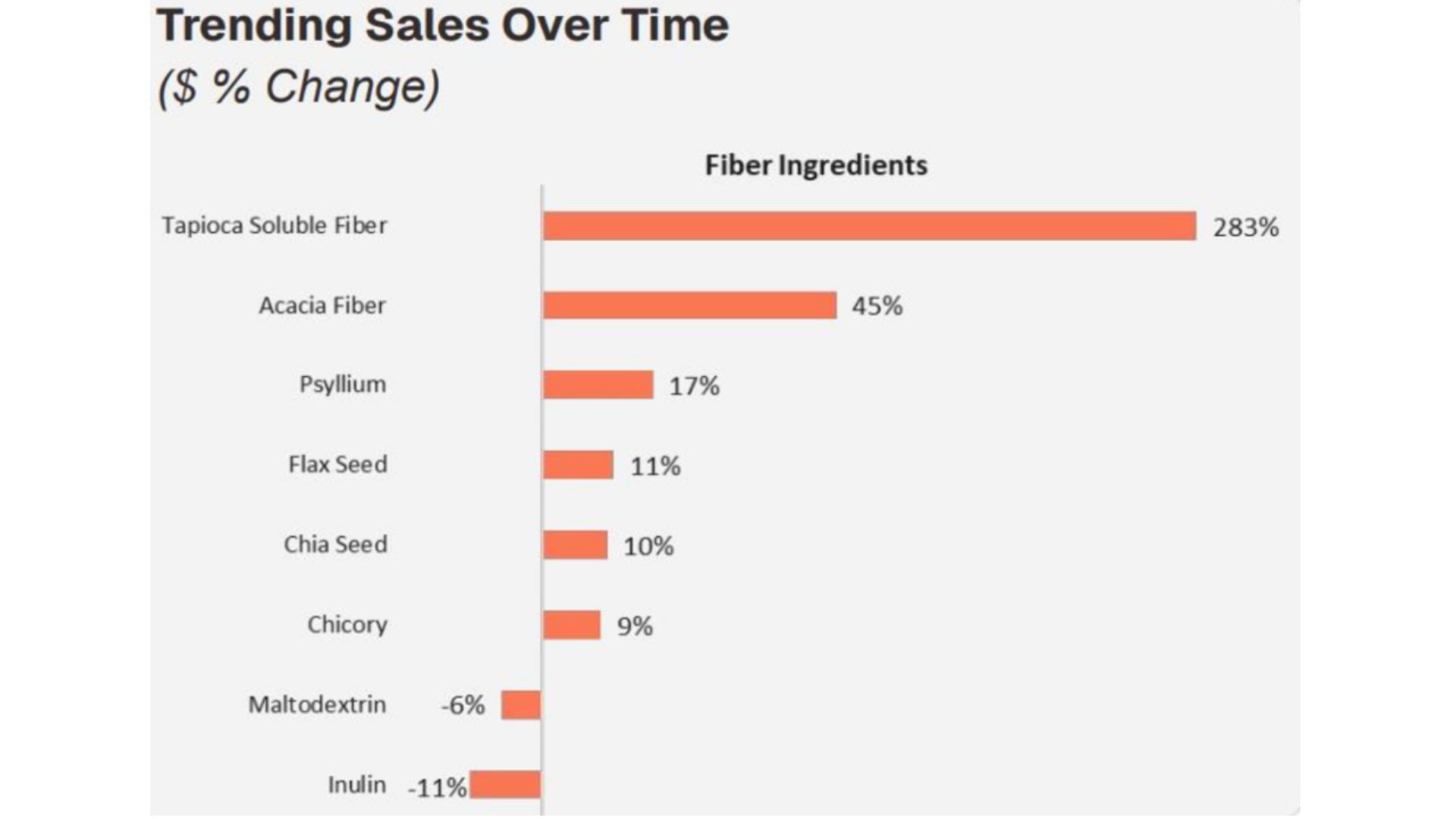 In the last 52 weeks ended Jan 25, tapioca soluble fiber is outpacing overall ingredient growth year-over-year, emerging as a clear innovation lever for brands. She noted, however, that some ingredients, such as inulin and chia seeds, are much more mature, which is why they may not be as fast-growing.