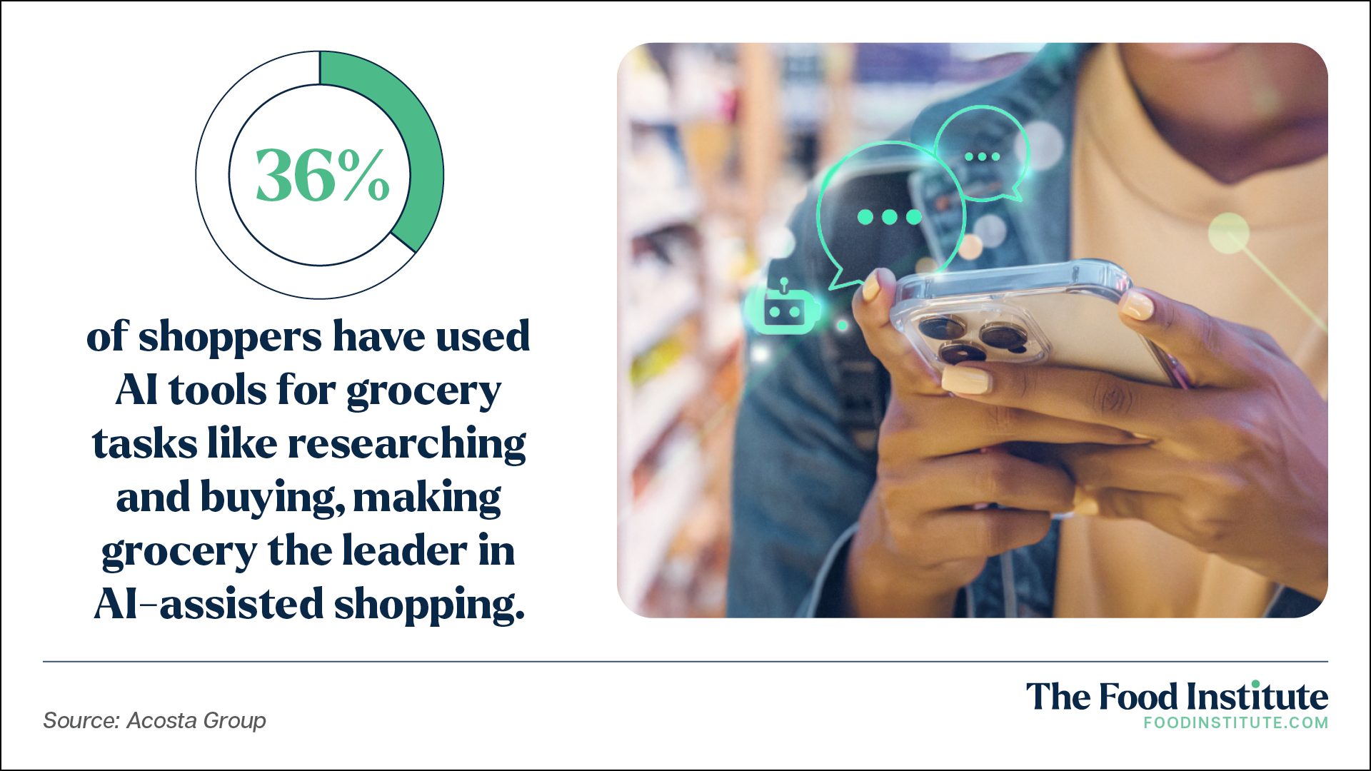 “Our research confirms that AI is transforming the way consumers shop, and consumers are embracing AI in grocery shopping faster than in any other category,” said Kathy Risch, SVP of shopper insights and thought leadership at Acosta Group.