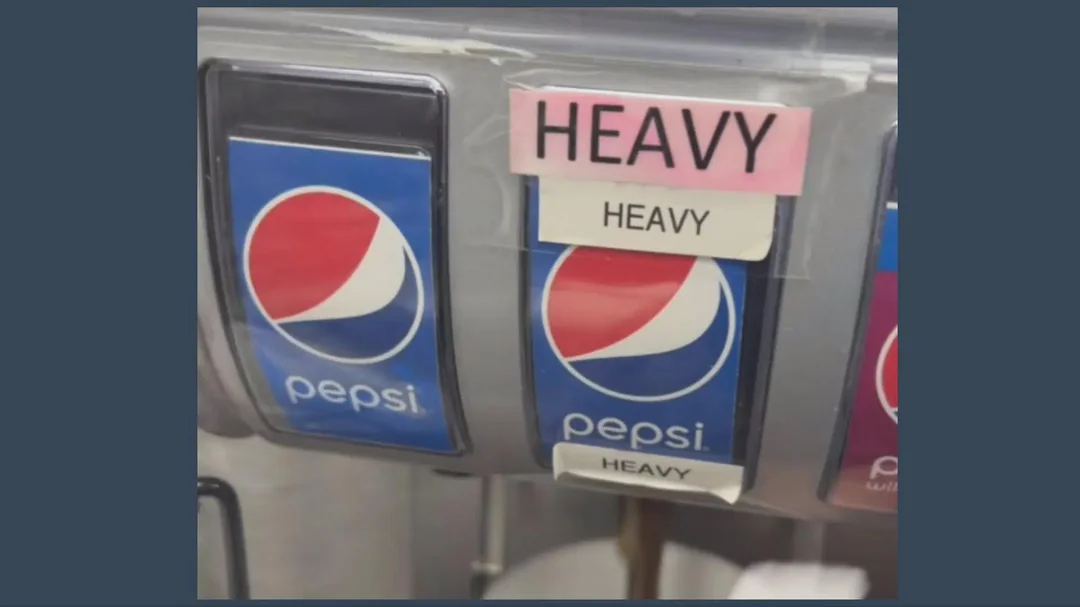 Popular “heavy” beverages include classic soda fountain options, such as Pepsi, Coke, and Sprite.