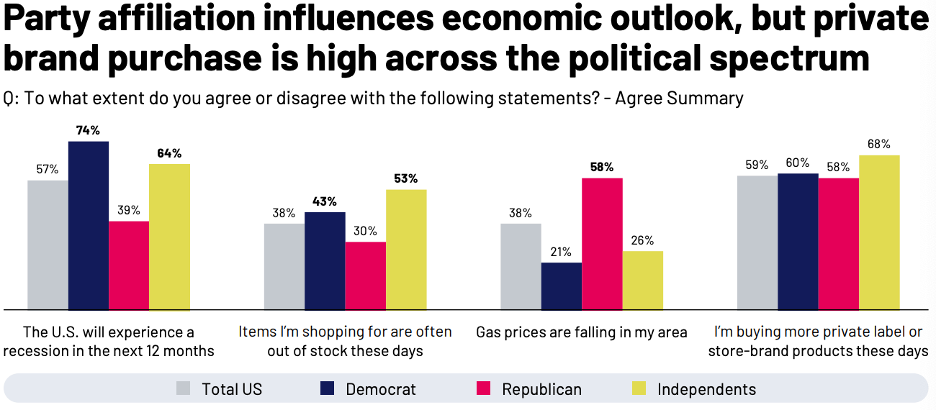Where 74% of democrats believe a recession is imminent, only 39% of republicans agree. These perspectives, in turn, impact purchasing decisions. In today’s market, however, one thing is clear: value is table stakes.