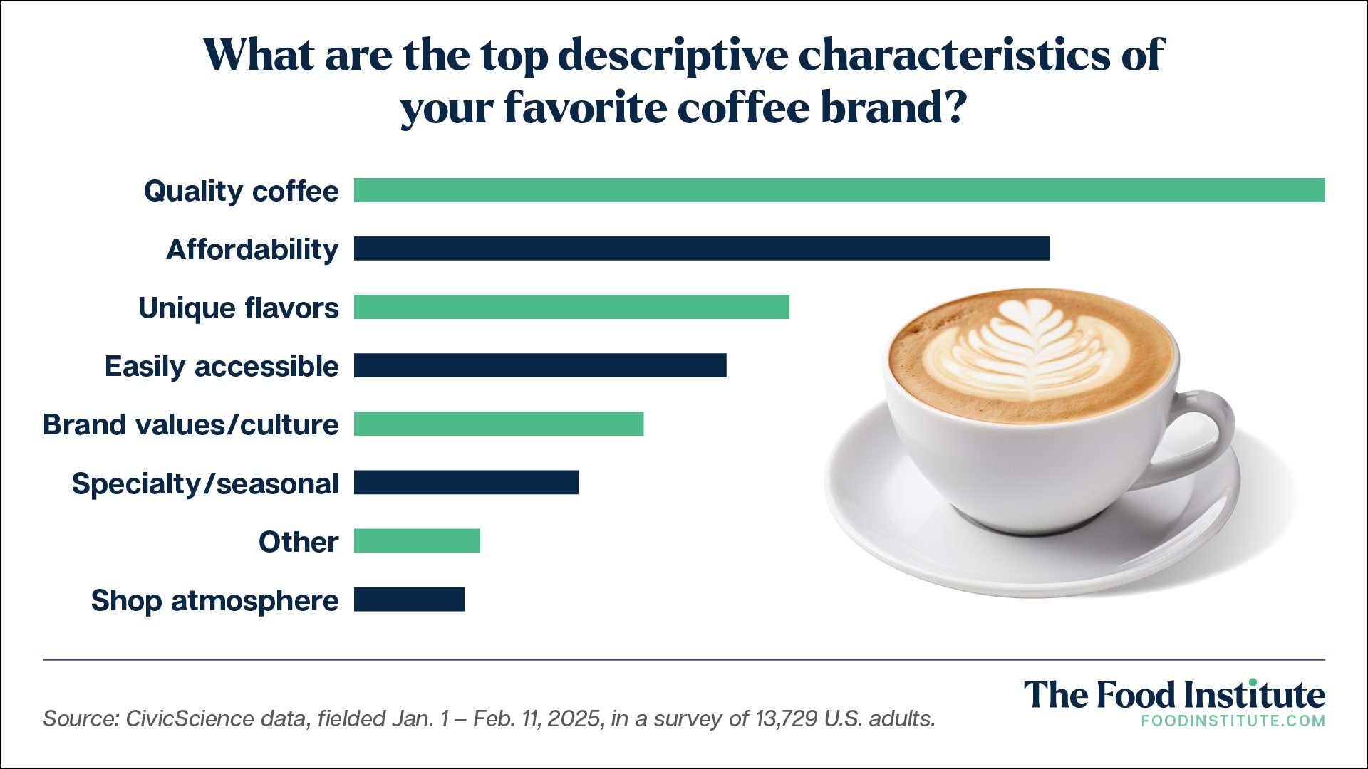 As a result, customer satisfaction in the chain is a clear indicator of a chain’s success. Leveraging consumer data from nearly 30,000 American adults sourced Jan. 1 – Oct. 6, The Food Institute determined the definitive ranking of the top national coffee chains, based on their craveability score.